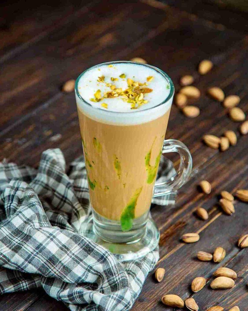 The use of almonds as a substitute for pistachios remains feasible when you lack pistachios. You can prepare the milkshake by boiling almonds in warm liquid and discarding the outer skin. The taste will differ slightly from when using pistachios. A kesar pista milk shake achieves its unique nutty taste mostly from pistachios.